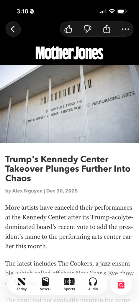- The John F. Kennedy Center for the Performing Arts, the national cultural center of the United States and a living memorial to John F. Kennedy was renamed the Trump Kennedy Center, after the current President named himself to the Board of Directors. The decision sparked outrage, confusion, and chaos, and did nothing to lower prices or fix our nation’s problems.
